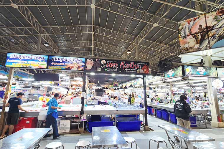 Thonburi Market Place 是在 2022年3月正式開始營業,約有 500 家商舖。市場分為熟食區、日常雜貨區及海鮮區,而在海鮮區更有免費的烤煮服務,遊客可即點即吃!市場佔地非常廣闊,除海鮮市場以外亦分別有雜貨及熟食市場,場外更有其他精品店及連鎖店,將它形容為曼谷版的築地亦不誇張。