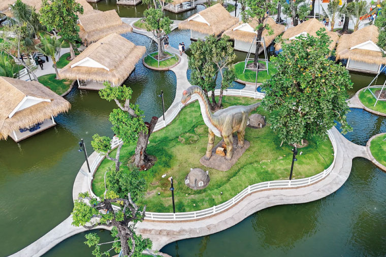 Pa Boon Café 7 Bangsaen,PaBoon咖啡廳第7間分店,,於 2024 年 12 月 28 日在邦盛地區開幕。這個分店走的是恐龍主題園區風格,是叢林風主題餐廳,還有超多恐龍佈景,恐龍會動還有聲音,相當生動,不僅有美麗的小花園,茂密的椰子樹林好美好好拍園區還放置一架大飛機,整間咖啡館占地超大,有規畫戶外可愛動物大草坪、室內坐位區、包廂區、戶外坐位區,水上坐位區,還有多人VIP坐位和兒童遊戲區、還有可愛的小動物(如鴨子、錦鯉、兔子、小鳥、山羊等)。
