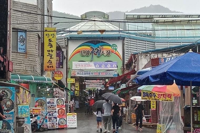 屬於忠清北道丹陽郡規模最大的傳統市場,至今仍保留韓國鄉下市集的古樸韻味,走入其中感受當地居民的生活日常,笑容燦爛、親切溫暖的大叔大嬸與爺爺奶奶,帶給旅客與眾不同的旅遊體驗。由於蒜頭為當地名產,招牌美食蒜頭血腸、蒜頭炸雞。