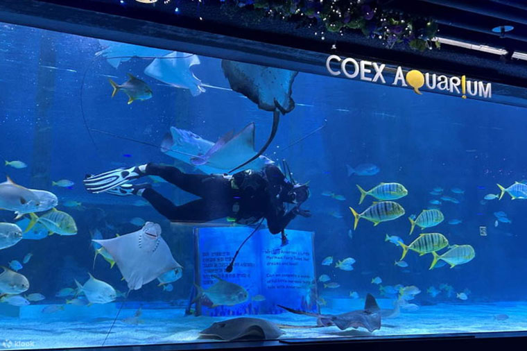 COEX水族館是韓國最早建成的主題水族館,它有40個參觀水池和140多個飼養池,共有6000多種約4萬多尾海洋生物。 每個水池被分成6個小區,通過海底隧道就可以清楚地觀賞了。