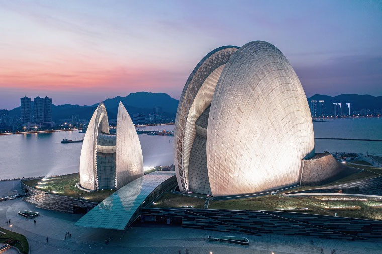 位於情侶路上是熱門的打卡景點。這座建築設計獨特,將自然與建築完美融合,營造出「山、海、城一體」的風貌。同時打造了多層觀海平台,提供絕佳的觀景視野。站在平台上,可以飽覽珠海漁女、珠海大劇院、港珠澳大橋等城市地標。