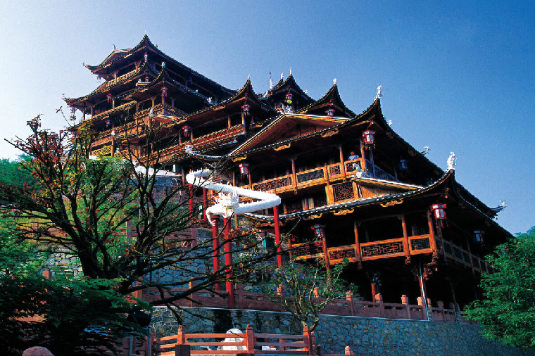 土家風情園座落在湖南張家界市城區,占地80餘畝,是以湘西人的土司城堡為基礎,以最完整的土家山寨舊址原貌為風格,於1997年原址修復後向遊客開放,是與張家界自然山水交相輝映的一顆璀璨的文化明珠,也是土家人朝拜、祭祀、祈禱和節慶的“聖地”。