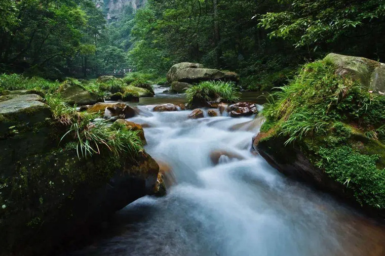 地處武陵源中心,是張家界國家森林公園的東大門、索溪峪自然保護區的西大門。四周峰岩奇秀,溪流潺潺,竹茂樹森,花香鳥語,奇峰石壁間一個芳草萋萋的綠洲,幾條山溪切割出東南西北四道山門。