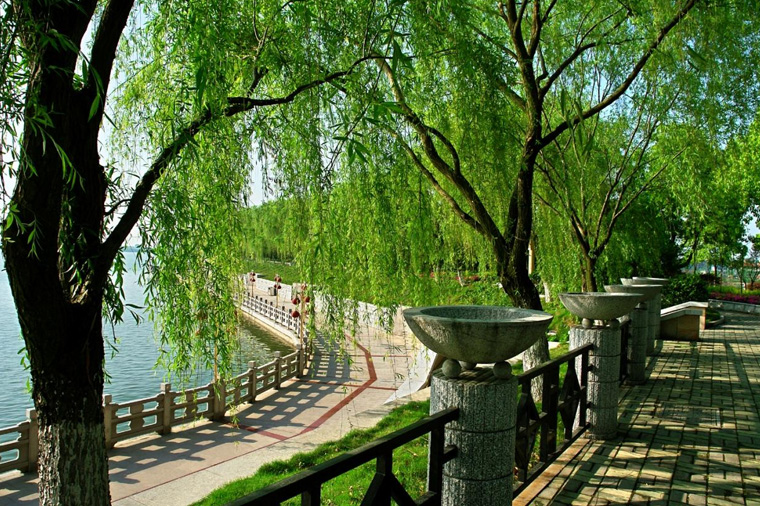 柳葉湖因湖面形似一片柳葉而得名,是五萬年前形成的一個天然湖泊,屬於西洞庭湖的一部分。坐落在湖南常德古城東北,東臨洞庭湖、南臨沅水、西依武陵山,北枕太陽山,是集山、水、田園、城四位一體的複合型旅遊度假區,被譽為"中國城市第一湖"和"城市環抱的水上天堂"。