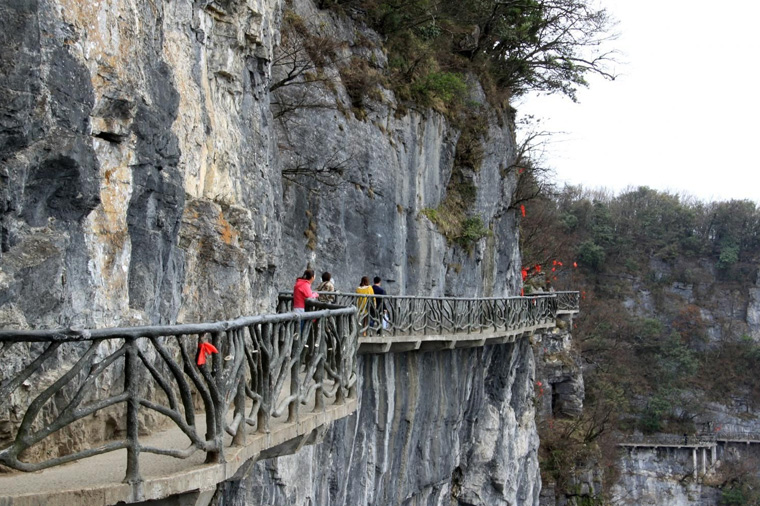 位於覓仙奇境景區,因懸於鬼穀洞上側的峭壁沿線而得名。棧道全長1600米,平均海拔為1400米,起點是倚虹關,終點到小天門。與其他棧道不同的是,鬼穀棧道全線既不在懸崖之巔,也不在懸崖之側,而是全線都立於萬丈懸崖的中間,給人以與懸崖共起伏同屈伸的感覺。 ※天門山景區如冬季期間因下雪山區路面結冰,山上環保車及手扶梯即停駛,則改為纜車上下,天門洞僅能安排在搭乘天門山纜車時遠觀,如造成不便敬請見諒。