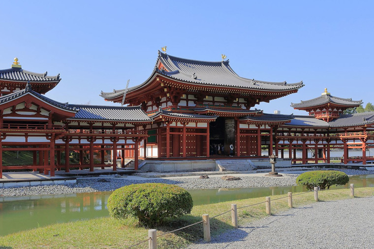該院興建於西元1053年,由平安時代權傾一時的藤原賴通改建其父別院,規模相當今日1/2宇治面積的平等院乃為引入宇治川水,依佛教末法之境,在水池之西建造阿彌陀堂,水池之東則建構象徵今世的拜殿,是為『淨土庭園』,其規格更為後來日式庭園的參考指標。